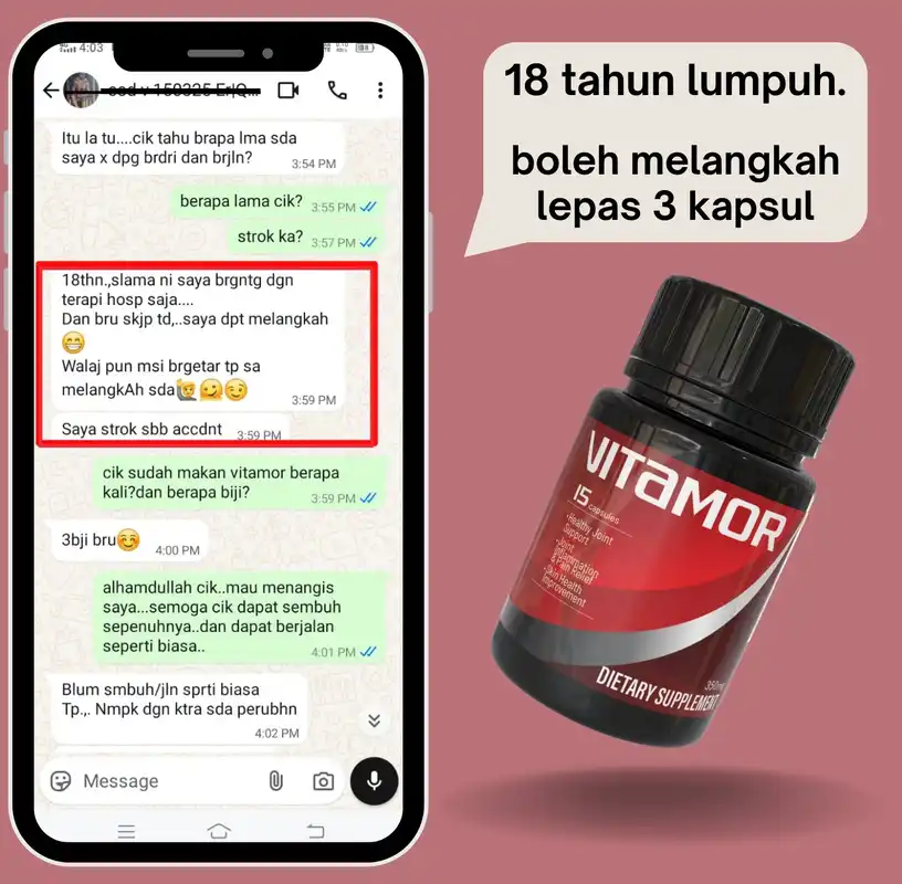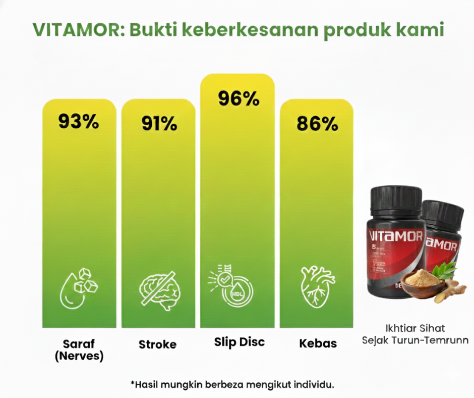 Bukan saja dapat pulih dari masalah sedia ada malah dapat jalani kehidupan harian yang lebih berkualiti. Lebih cegas, sihat & bertenaga, hanya dengan amalan Kapsul Vitamor.